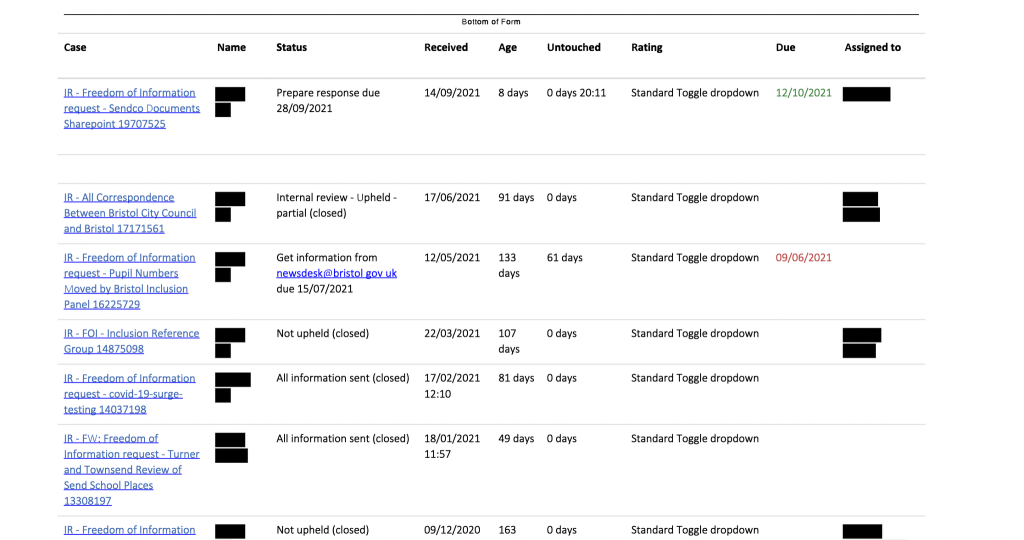 It’s worth me saying that my data has been hugely redacted. I also have not received all of it. This I know because other people who have done Subject Access Requests during this period of time have had data of mine in theirs that I’d never seen before. This was particularly in reference to FOI questions about education and Special Educational Needs and Disabilities that the council did not want to answer.