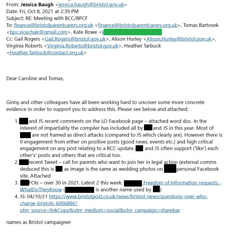 What forum members had been unaware of was the depth and scale of the investigation and continuing monitoring by Bristol City Council. It went over and above a single issue – which was found not have breached any forum rules – and was to persist throughout the year and into 2022. There is no way now to tell if it continues to this day.