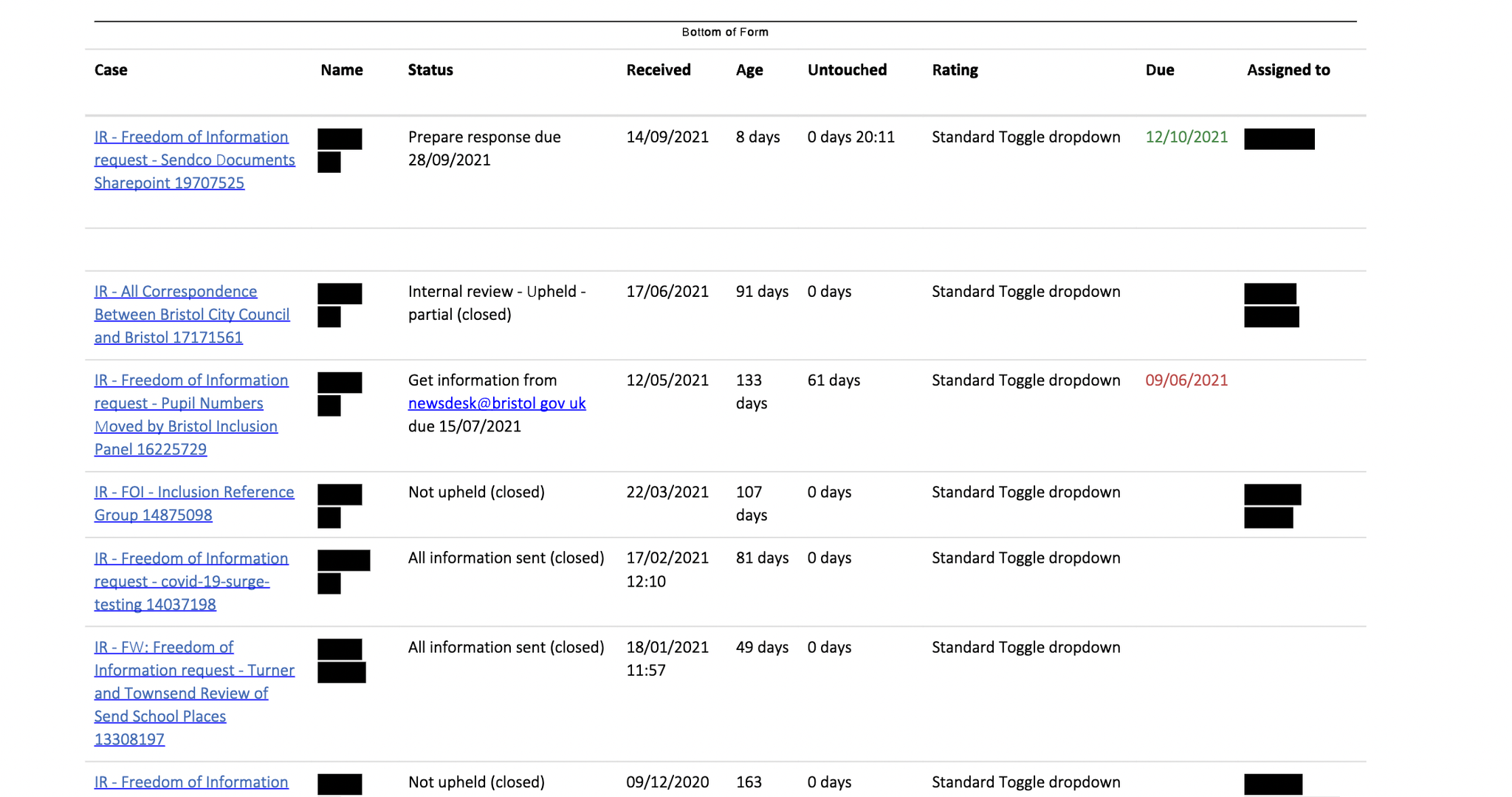 Here, during the same period of time as the original known spying incident, shows Bristol City Council did not want to answer FOIs made by two people, one being me.