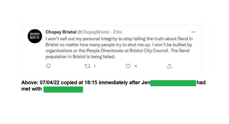 A communication plan by Bristol City Council, showed the council had no intention of ever working with Bristol Parent Carers